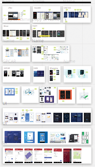 We created a competitive analysis of other vehicle tracking apps in the market. We needed to find out if there were any gaps for improvements in the existing tracking apps and trends that I could pick up, such as similarities that users can Identify. I especially wanted to pay attention to the interface of these apps because one of our primary purposes was to update and improve the visual design of the Dashboard page in the existing app. For this purpose, we create a board in Miro and upload competitors' apps and specify their strengths and weaknesses.
