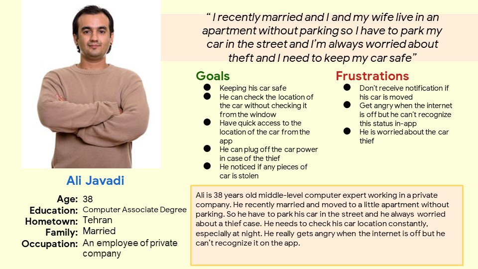 Some essential tips in this project were precious to me. One is that working for Smart services is very different. Because the application is directly related to a piece of hardware, this connection creates other challenges. Secondly, when I start a project in the development phase, we have to have a close and permanent relationship with the developers and the technical team because many of the changes we want to make in the application after research may not be possible. When we have a time constraint, we should be able to prioritize the changes to be made.​
